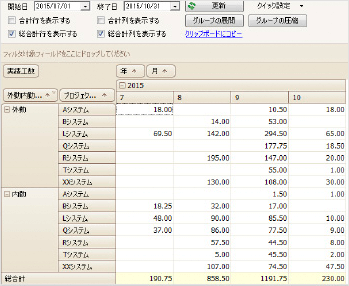 当初はシステム導入プロセスのみを工数入力の対象としていましたが、それ以外の会議等の業務についても、入力対象に含めるようメンバーからリクエストがありました。システム利用に慣れてくると、空き時間が気になるようです。そのため、現在では会議等の間接業務についても入力対象とし、その視点でも無駄の有無がチェックできるようになりました。