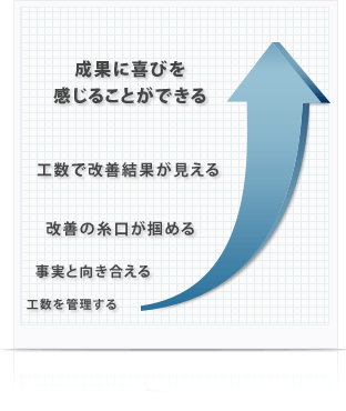 見えてきた“事実”を元にして改善に取り組んだ結果も、やはり工数に現れます。改善の効果も工数が教えてくれるのです。成果に喜びを感じることができれば、改善に対する意欲も湧きますし、愉しくなってきます。