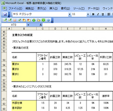 「TimeTracker FX」は、見積もりからスケジューリング・進捗管理までカバーする社内標準プロジェクト管理ツールになりつつありました。 一方で、現場では報告書をExcelで書くことが多く、その帳票を見てみるとよく工夫されており、Excelでの進捗報告は現場にとってやはり必須であることが分かりました。Excelの報告書にTimeTracker FXのデータを転記する作業は手間がかかるため、TimeTracker FXを使わなくなってしまうケースもありました。そこで、「TimeTracker FXがExcelと簡単に連携することでお互いの良さを活かす」という方針に切り替え、「Excel連携アドイン」という新機能を開発。Excelの報告書とTimeTracker FXが簡単に同期できるようになりました。