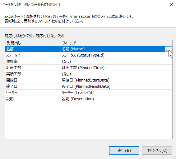 Excelの報告書を更新した後は更新したい行を選択してクリックするだけでTimeTrackerに反映できます。