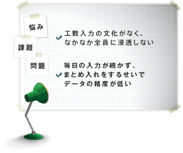 誰もが毎日工数を入力できるように支援します。