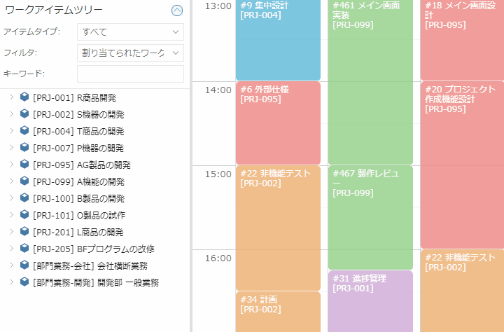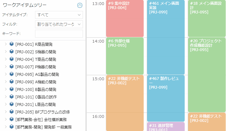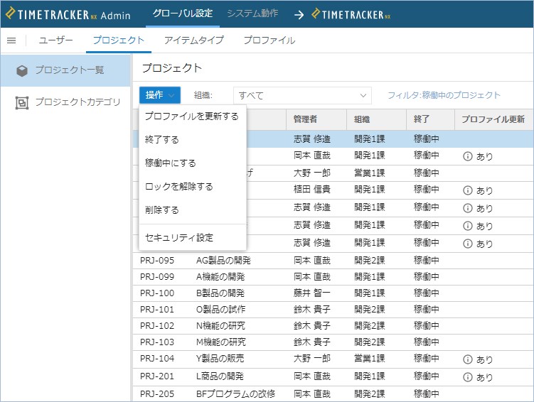 アイテムツリー上では、プロジェクトの表示・非表示も可能になりました。当面実施する予定のないプロジェクトを非表示の状態にしておけば、ツリーは常に簡潔な状態になり、工数入力の効率が向上します。