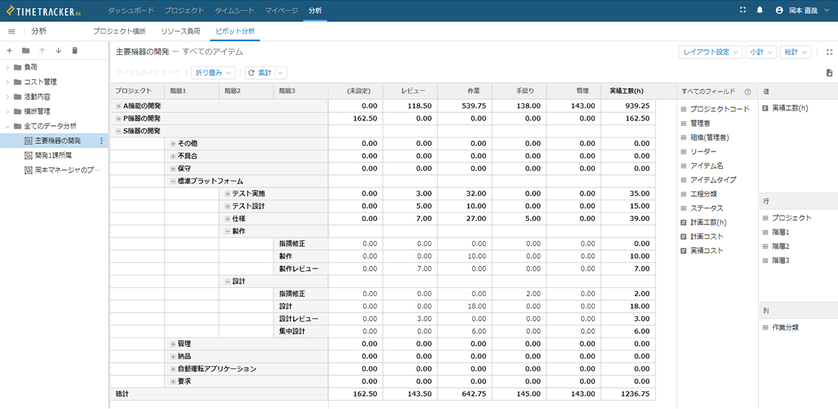 実績を集めると生産性のデータが徐々に見えるようになります。