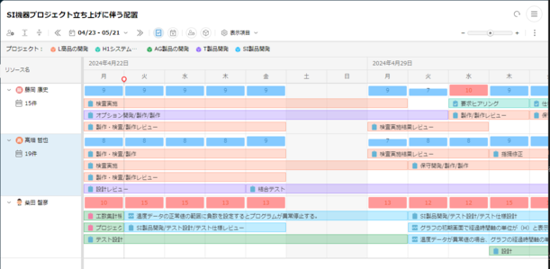 プロジェクトを跨いでメンバーの負荷を確認しながら仕事を割り当て