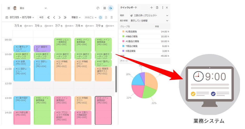 Web APIを活用することで、TimeTracker NXの工数データを勤怠システムに取り込むことができます。