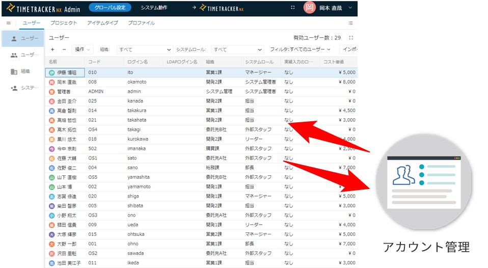 ・TimeTracker NXのコスト情報を採算管理システムにエクスポートする。
