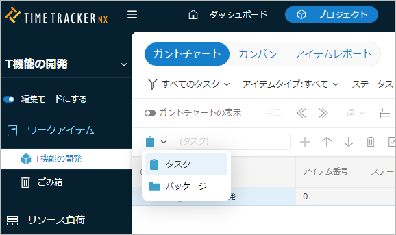 次は、作成したプロジェクトに個々の作業(アイテム)を追加していきましょう。