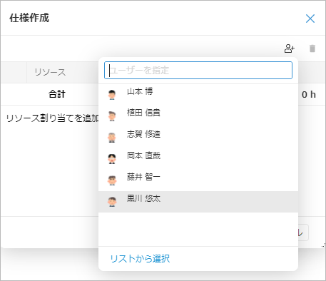 アイテムへのリソース割り当ては、プロジェクトに設定されているメンバーから選択する仕組みになっています。