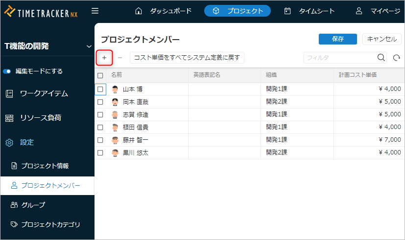 プロジェクトに参加するユーザー(プロジェクトメンバー)もあらかじめ設定しておきます。