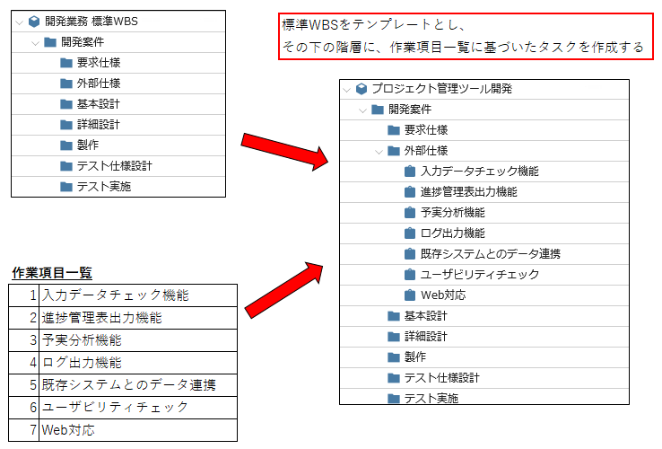 以下で標準WBSを実際に作成して運用している例を紹介します。