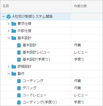 「基本設計」「詳細設計」など各工程の作業をそれぞれシンプルに1アイテムとしています。 -