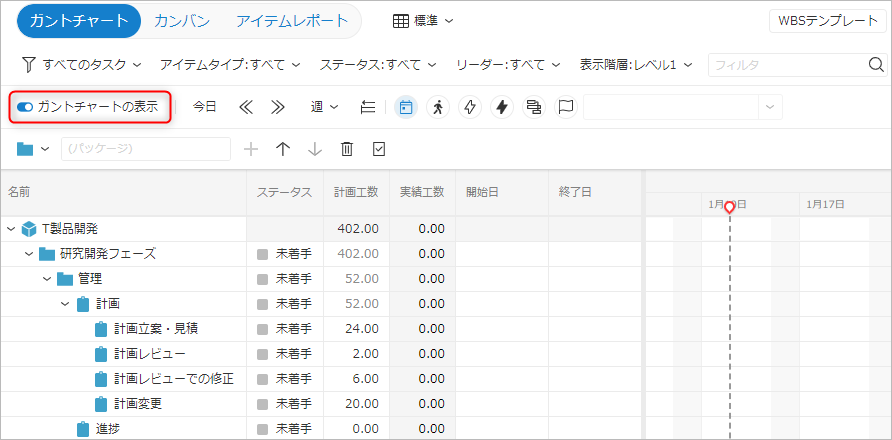 - 「ガントチャートの表示」アイコンをクリックする。