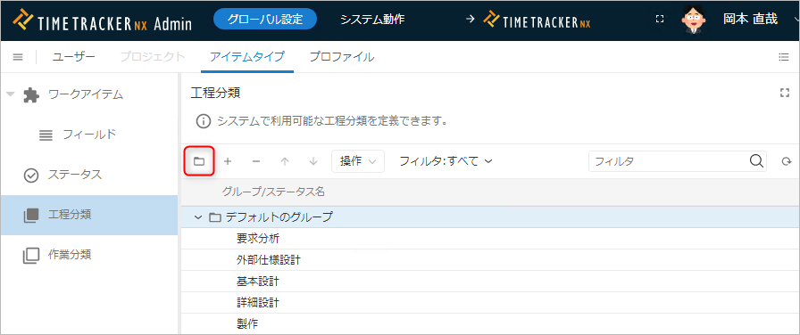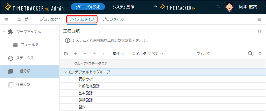工程分類は、ワークアイテムを工程の視点で細分化するための情報です。