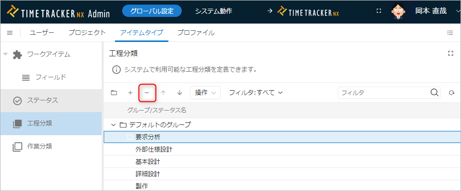 工程分類一覧の上部にある「-」アイコンをクリックする。