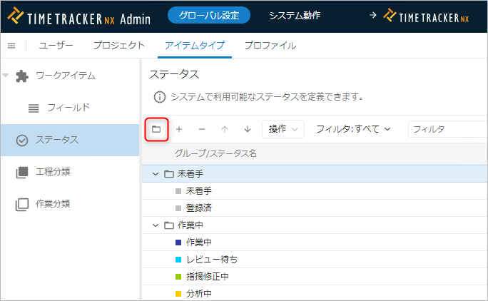 以下の方法でワークアイテムのステータスを追加します。