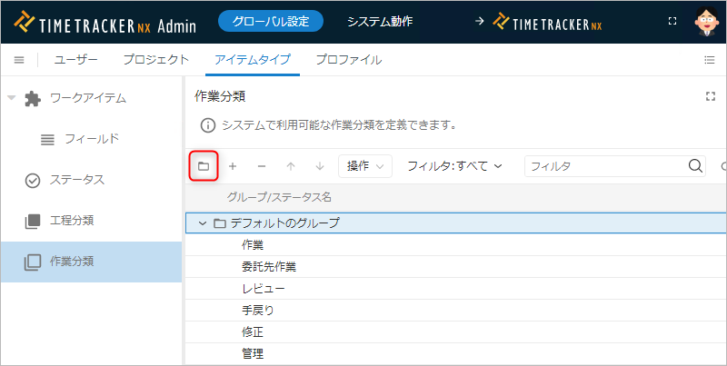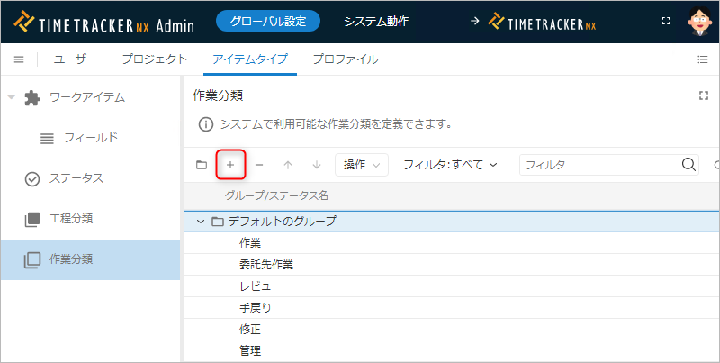作業分類のグループを追加する