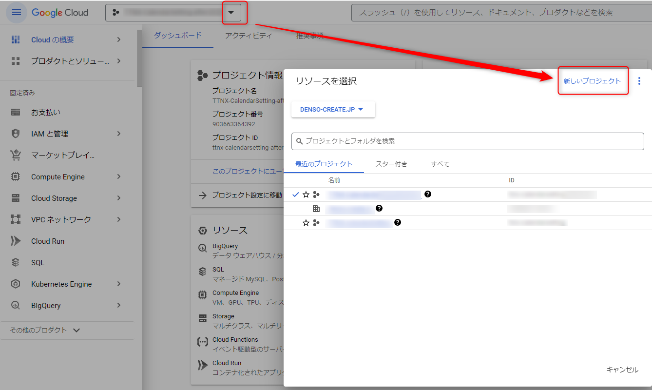 任意のプロジェクト名を入力し、「作成」ボタンをクリックする。