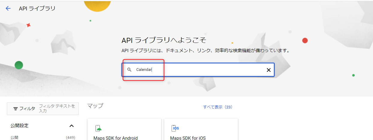 検索欄に『Calendar』と入力して『Google Calendar API』をクリックし、APIを有効にする。