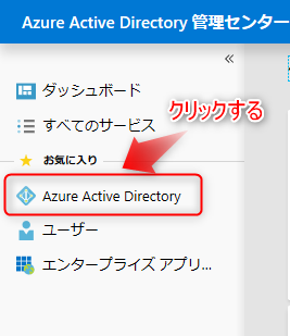 遷移後の画面のサイドナビから 「Azure Active Directory」をクリックする。