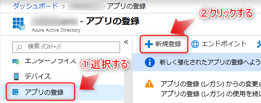 「管理」→「アプリの登録」を選択し、「新規登録」をクリックする。