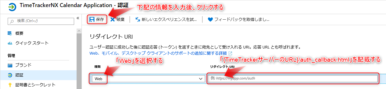 「承認済みのリダイレクトURI」が、実際に TimeTracker NX が配置されている URL と