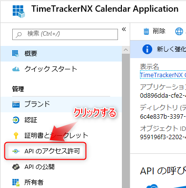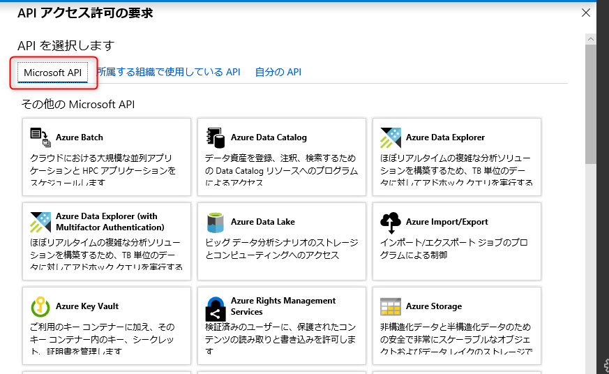 「APIのアクセス許可」を選択し、「アクセス許可の追加 」をクリックしてください。