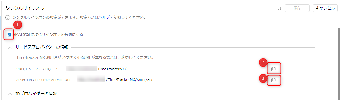 「URL(エンティティID)」「Assertion Consumer Service URL」が表示されますので、コピーしてテキストに貼り付けてください。