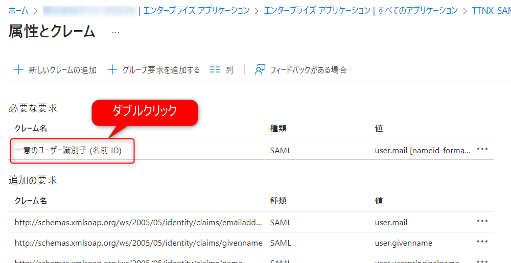 遷移後の画面で「一意のユーザー識別子」をダブルクリックしてくださ い。