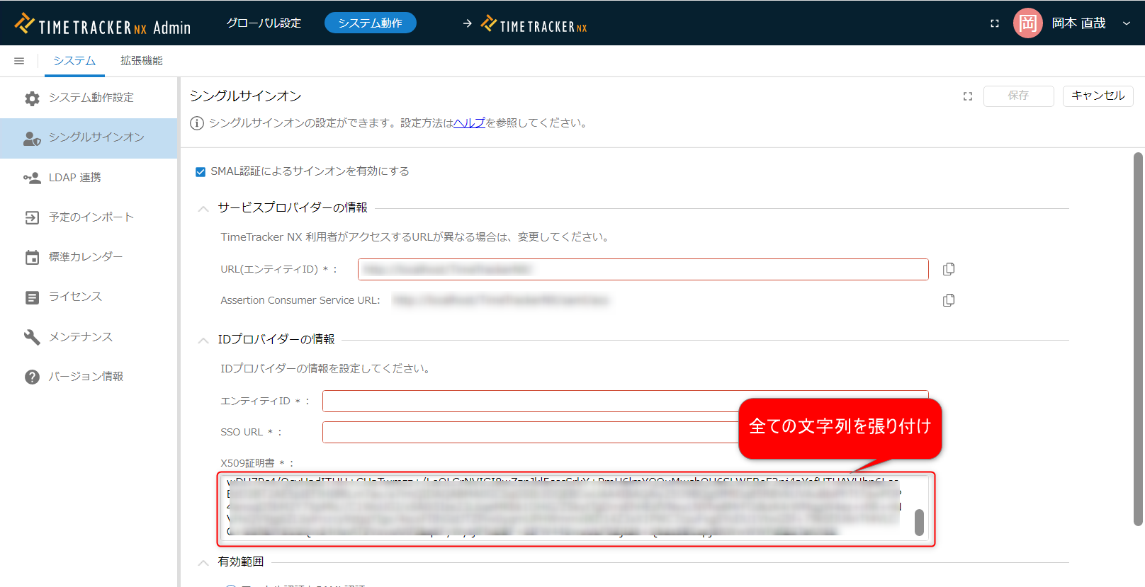 設定時の注意事項を次のリンクに記載していますので、事前にご確認ください。: 「SAML認証時の注意事項」