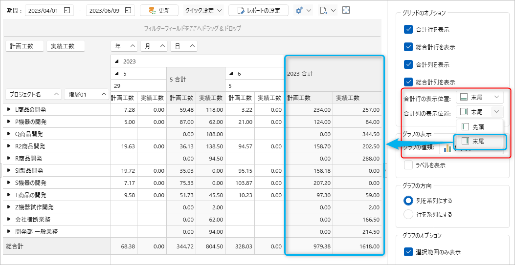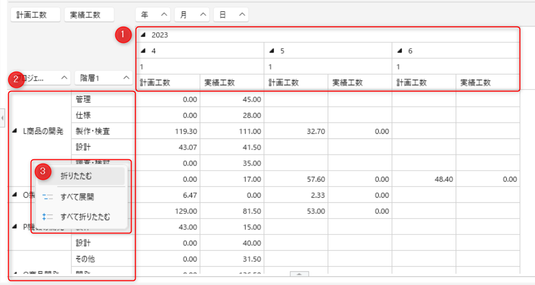 詳細は次のリンクを参照ください。: 「TimeTracker NX のピボット分析機能」