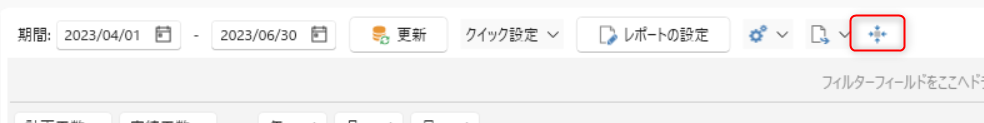 フィールド一覧に対象のフィールドがない場合、「レポートの設定」ボタンをクリックし、