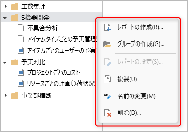 | ② | レポートのグループを作成します。 | ナビゲーター |