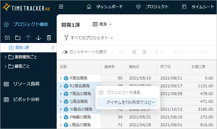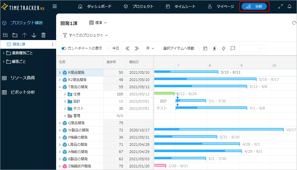 - 複数プロジェクトを管理する立場のマネージャーの場合、自分の管轄下にあるプ ロジェクトのガントチャートを