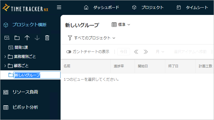 ガントチャートに表示するプロジ ェクトをビューに設定し、必要なプロジェクトのみを表示することができます。