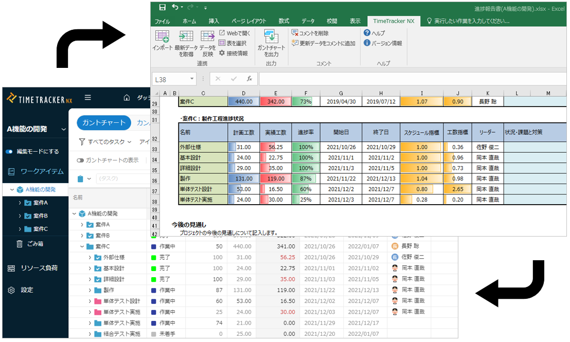 Excel帳票に記載したデータとTimeTracker NXのプロジェクト情報を連携することができます。