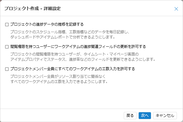 | 閲覧権限のあるユーザーにワー クアイテムの進捗データの更新を許可する | プロジェクトのセキュリティ | ■ |