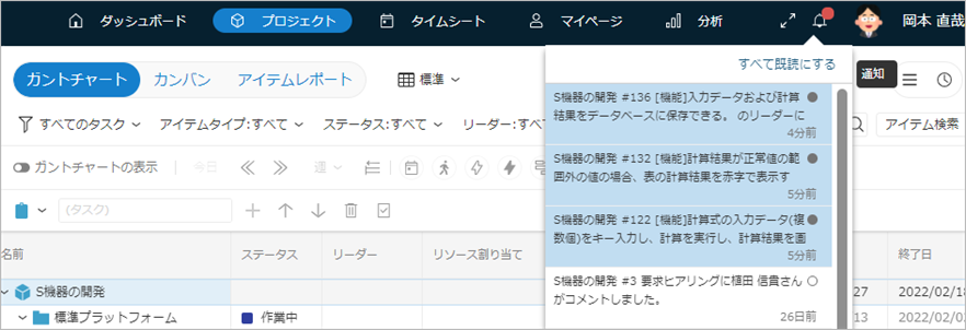 ワークアイテムは、プロジェクトの中の作業項目(タスク)です。