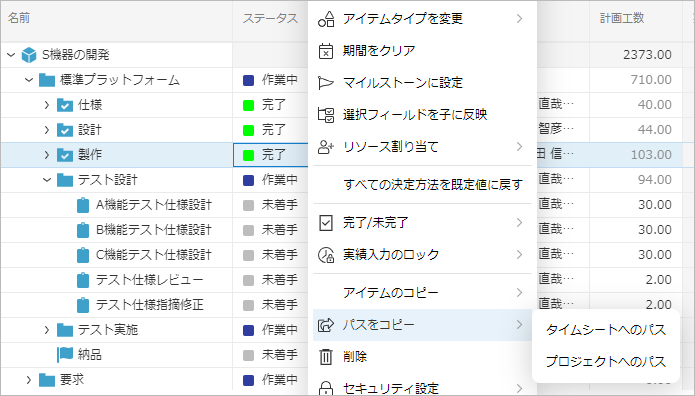 アイテムの階層構造(WBS)を実現しています。各アイテムに対して以下の操作ができます。
