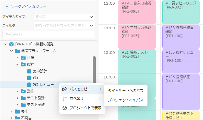 - 実績工数は、プロジェクトやユーザー、組織などで集計する。