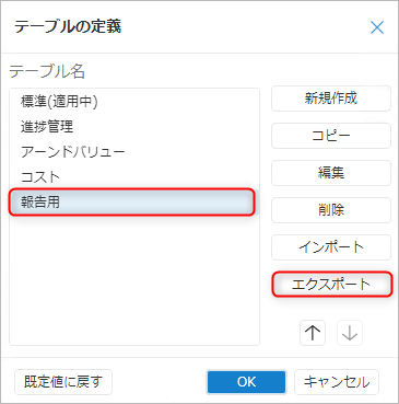 - 例えば、進捗管理用テーブル、コスト管理用テーブルなど。