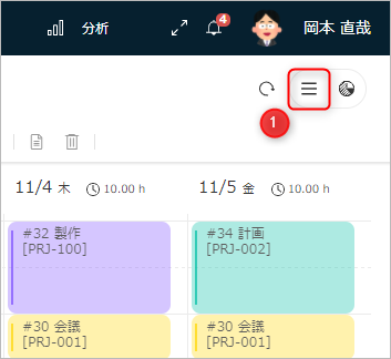 タイムシート画面右上の「アイテムプロパティ」ボタン①をクリックする。