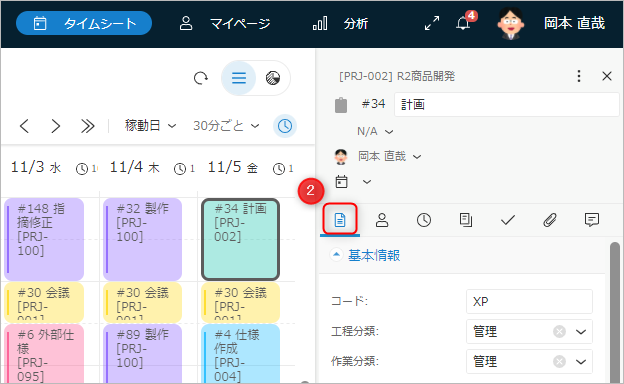 - 残り作業時間はタイムシートからも設定することができます。