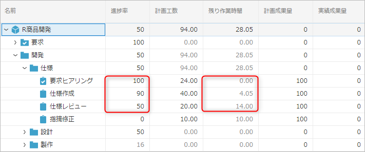 - 作業の進捗に合わせて残作業時間を減らしていくことで、進捗率が増加します。