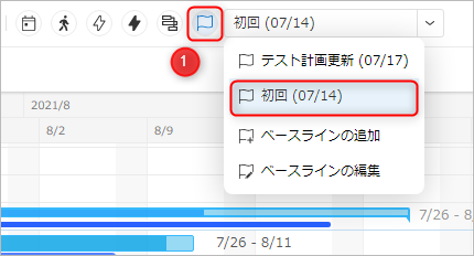 保存したベースラインを現在の計画と比較して、差分をガントチャート上で確認することができます。