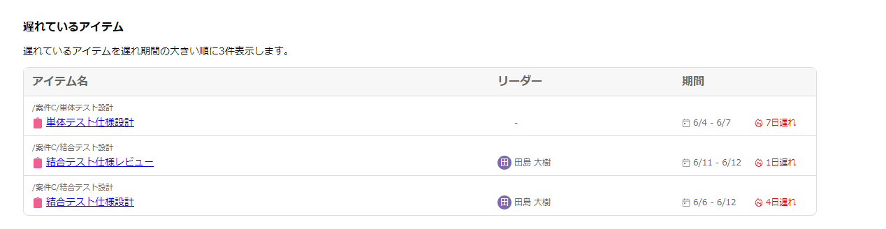 | 遅れがあるアイテム | ![]() |