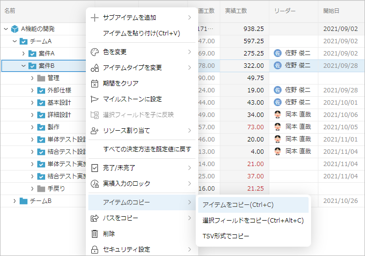 - プロジェクト管理:ワークアイテム単位で計画や実績を管理する