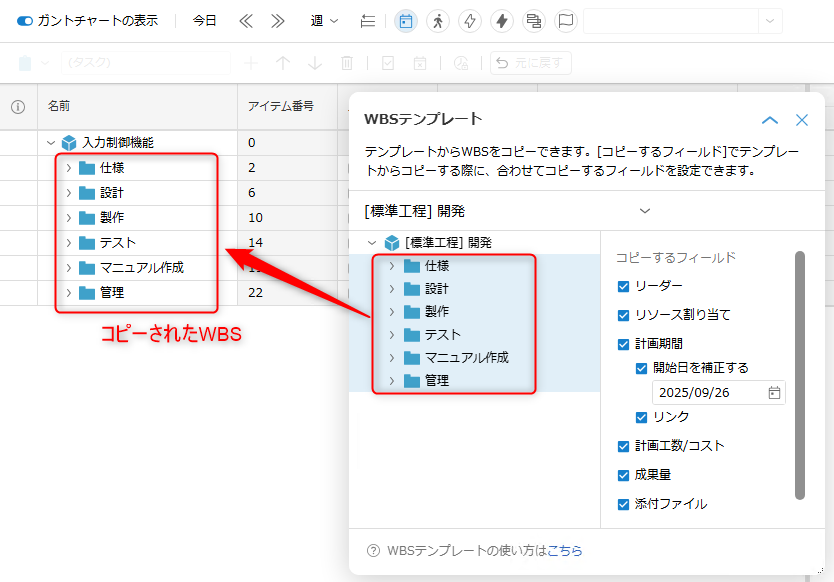 | WBSテンプレートをコピーする | ○ | ○ | |||
