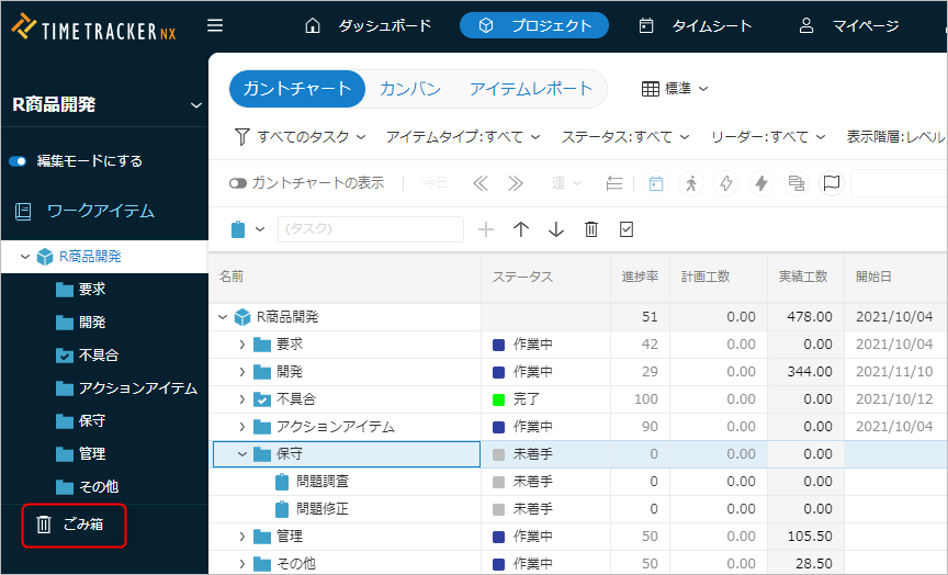 このページでは、ワークアイテムの削除/復元方法をご紹介します。