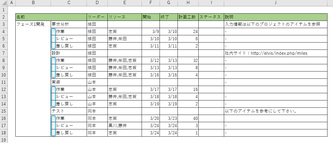 ExcelからのWBSコピー&ペースト機能については、次のリンクを参照ください。: 「ExcelからWBSをコピーする 」