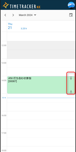 - 対象の実績を長押しすると、実績の時間変更できます。